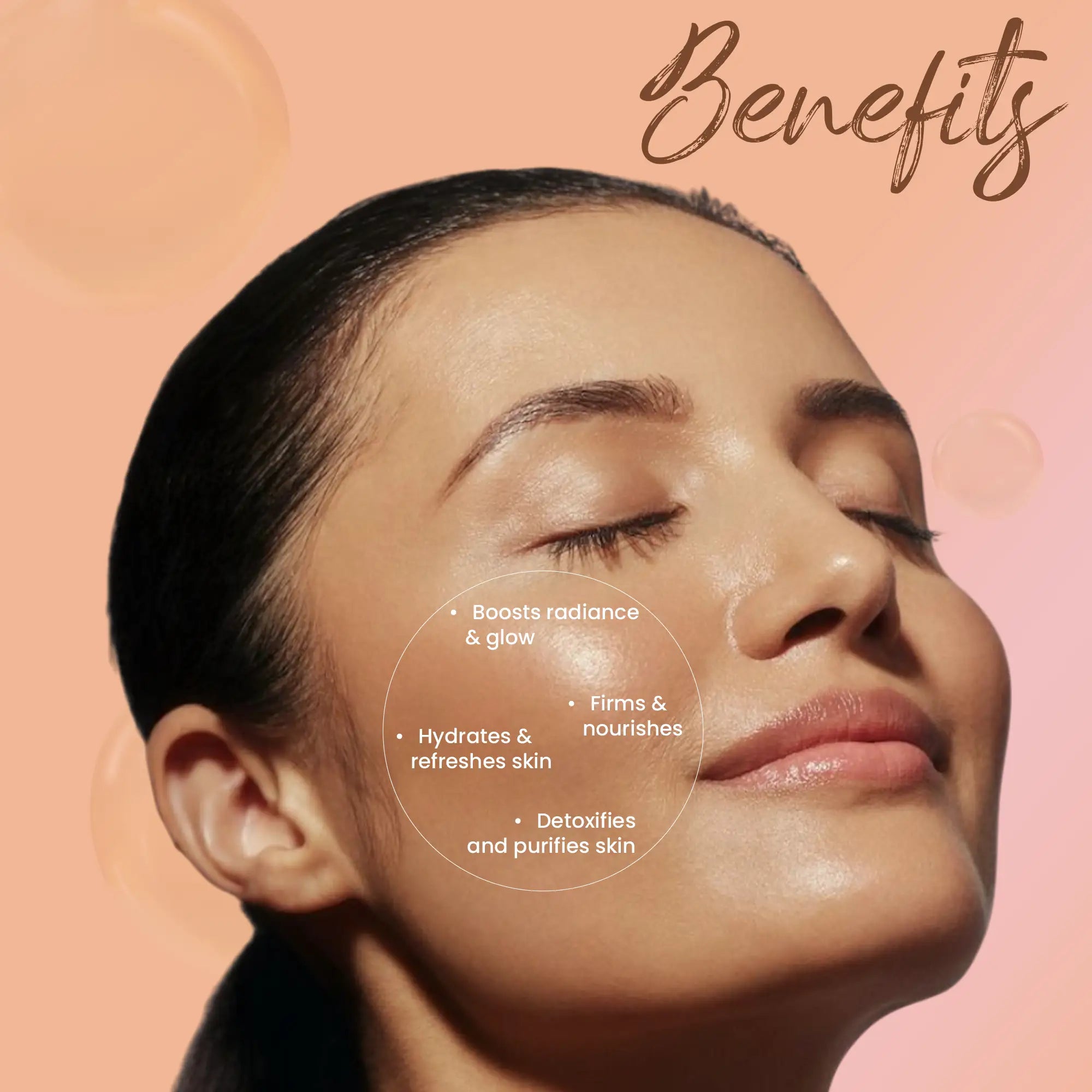 A: For glow: Rose water. For detox: Water or green tea. For hydration: Milk or yogurt. For anti-aging: Pomegranate juice or aloe vera. For acne: Water + 2 drops tea tree oil. For brightening: Lemon juice (patch test first).
