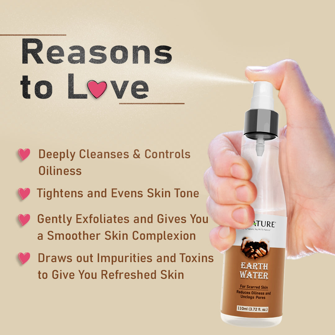 It helps to control excess oil and acne breakouts. Known for its absorbent properties, Earth Water draws out dirt, impurities, and toxins, unclogs pores, and evens your skin tone naturally. It also helps to improve your skin's natural texture.