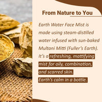 Earth Water is made using Mitti (Baked Earth) and finds its roots deep in Indian skincare rituals. Traditionally, it was used for its purifying and healing properties. It naturally detoxifies, soothes, and rejuvenates your skin, reflecting traditional Indian skincare rituals.