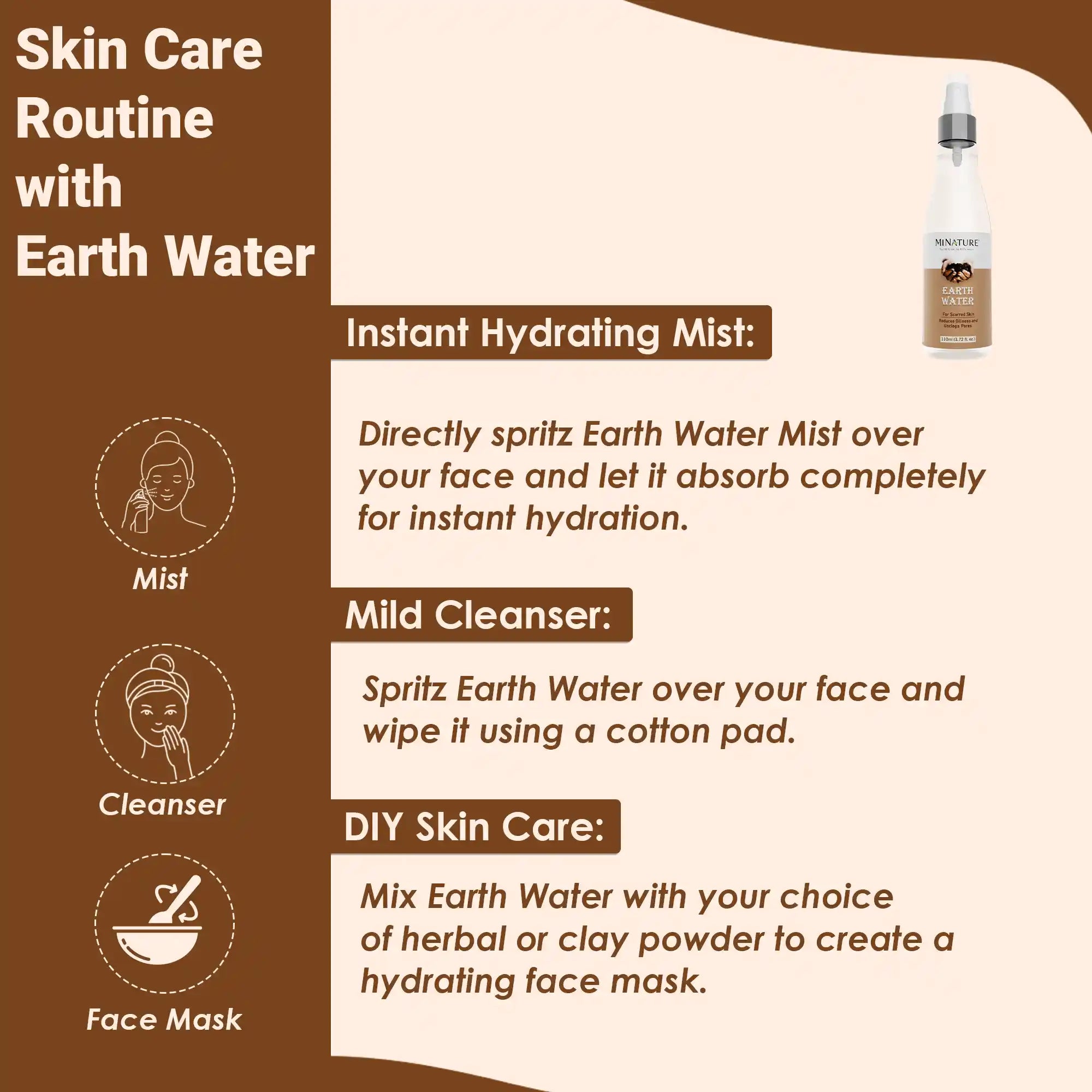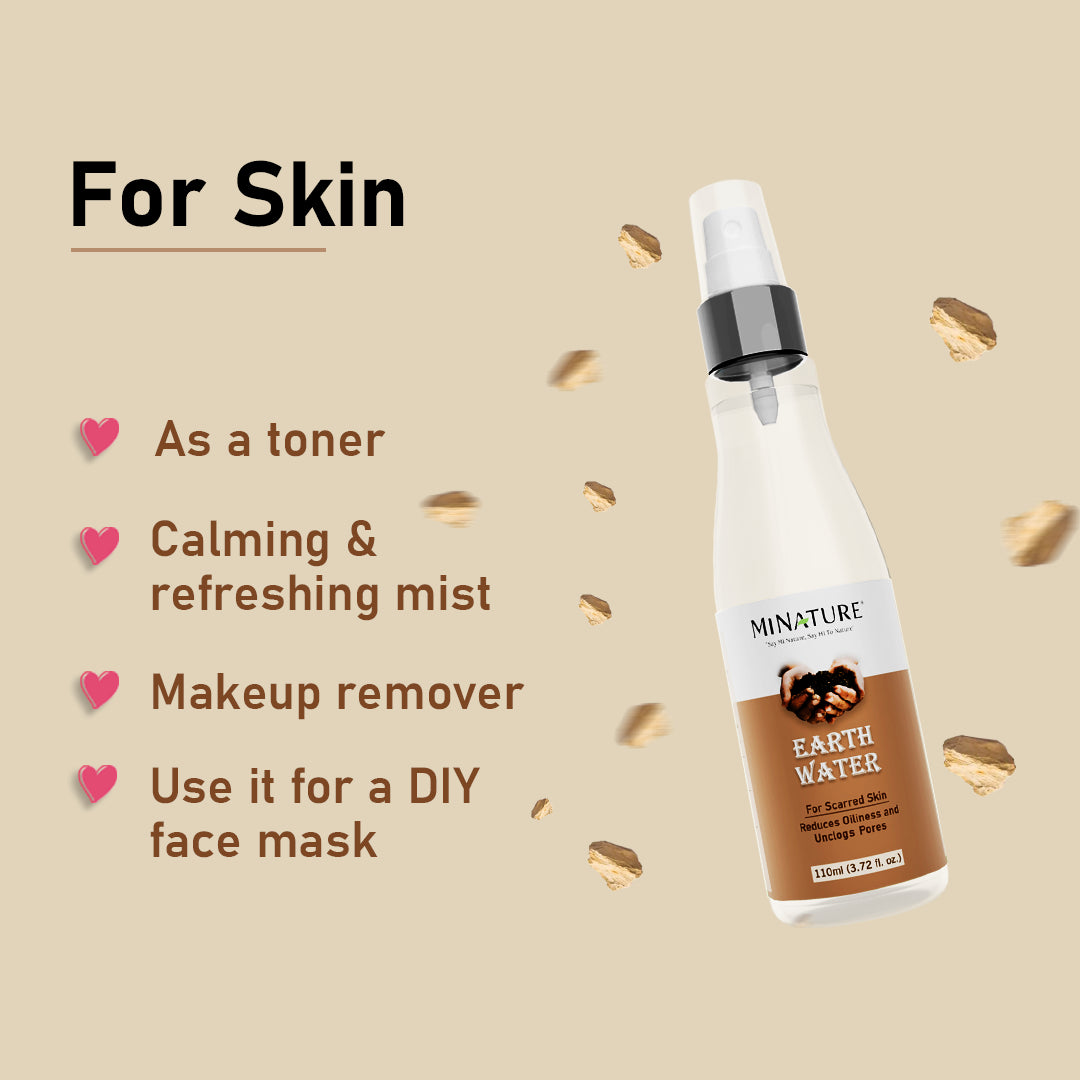 MINATURE Earth Water is a natural pore cleanser, that controls oil and gives you clear, acne-free skin. With regular use of Earth Water, you can achieve a clear and younger-looking skin.
