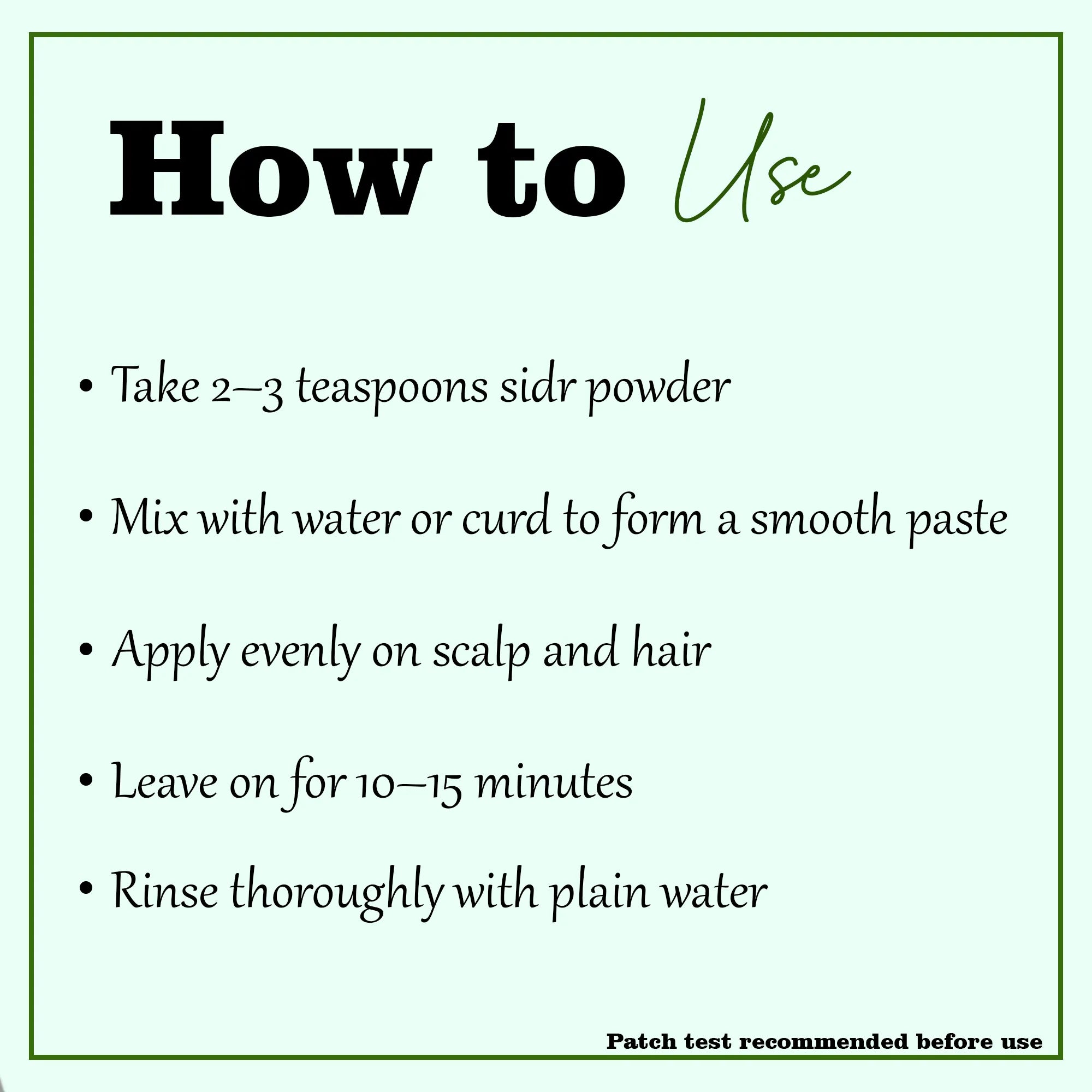 Sidr powder is excellent for promoting scalp health and reducing dandruff, making it a great choice for sidr for hair. It strengthens hair strands, adds shine, and improves manageability. For skin, sidr leaf powder helps cleanse and soothe, leaving your skin feeling refreshed. Its natural properties make it ideal for those looking for a gentle, chemical-free alternative.