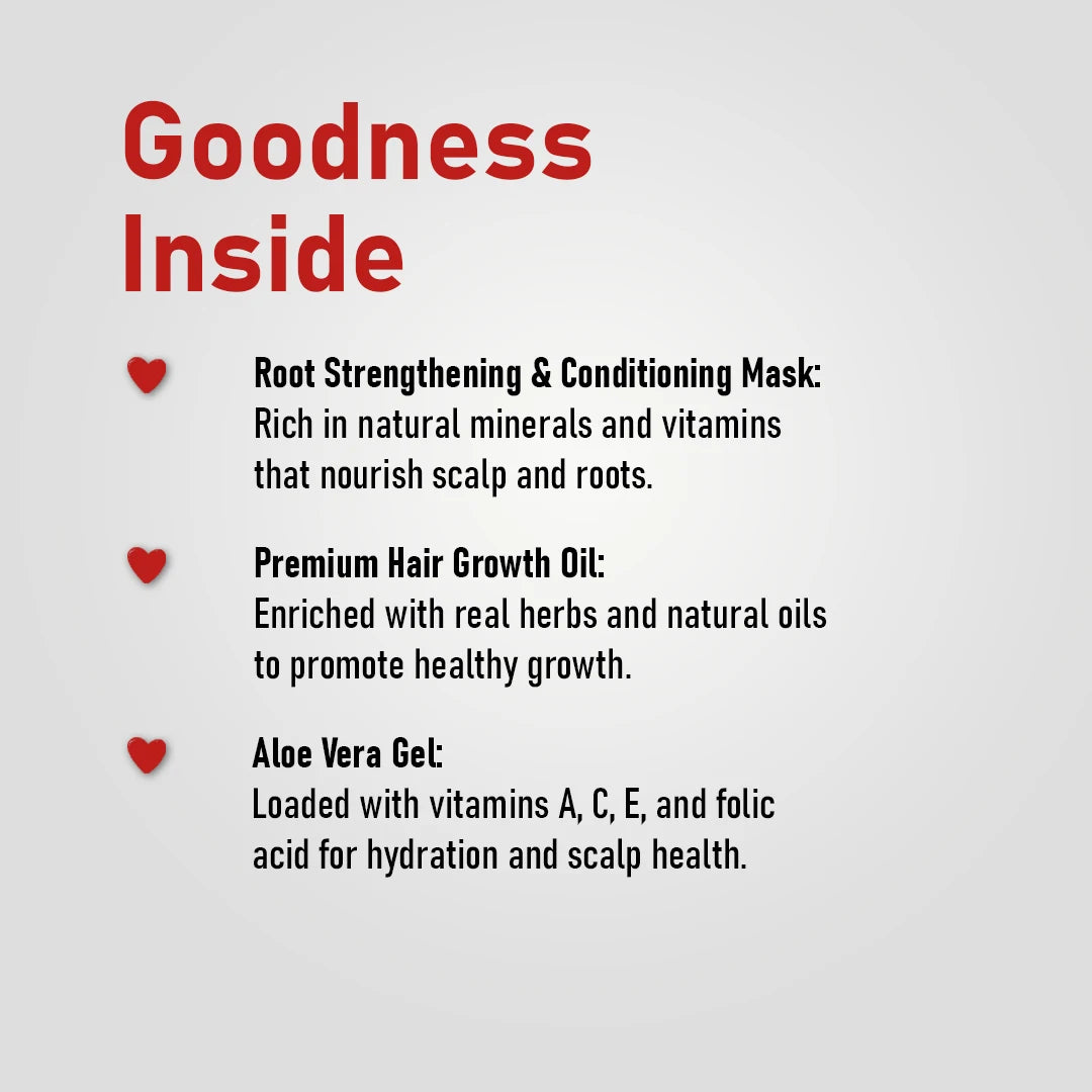 • Root Strengthening & Conditioning Mask: Treat your hair to the indulgence it deserves with our Root Strengthening & Conditioning Mask. Infused with potent botanical extracts and vitamins, this mask nourishes the scalp, strengthens hair roots, and repairs damaged strands. Its rich, creamy texture glides smoothly, enveloping each hair strand in a cocoon of moisture and nutrients. Regular use revitalizes your hair, making it more manageable, resilient, and naturally radiant.