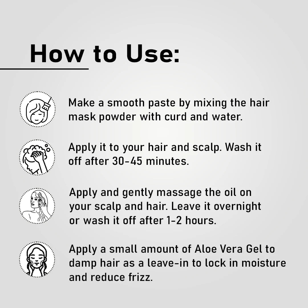 • Aloe Vera Gel: Experience the soothing touch of nature with our Aloe Vera Gel, a versatile elixir for your hair. Enriched with vitamins, minerals, and enzymes, Aloe Vera Gel hydrates the scalp, promoting a healthy environment for hair growth. It helps balance the scalp's pH, reducing dandruff and itchiness. Additionally, Aloe Vera Gel imparts a natural shine to your hair, making it soft, smooth, and manageable. Its lightweight formula is non-greasy and leaves your hair feeling refreshed and revitalized.