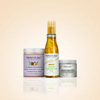A holistic approach to luscious, healthy hair that shines with vitality. This expertly crafted trio of hair care essentials is designed to rejuvenate your locks, strengthen your roots, and provide deep nourishment from root to tip. Say goodbye to dull, lifeless hair and embrace the beauty of naturally vibrant, silky-smooth tresses.